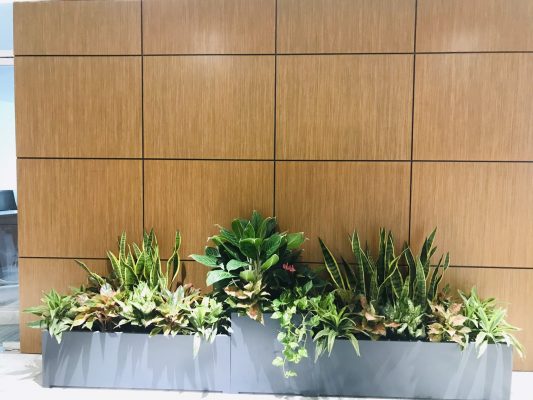 Queenpot cung cấp toàn bộ cảnh quan xanh cho Hội sở MBBank: Chậu composite chậu xi măng nhẹ.