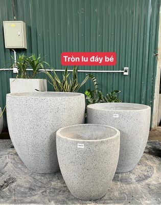 Chậu Xi Măng Nhẹ Tròn Lu Đáy Bé